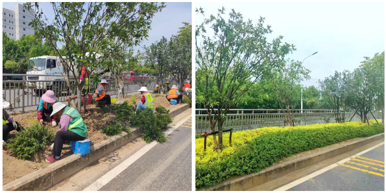 魏武路的提升改造,從制定計劃到最終落實歷時三個月,其中補植色塊約1.2萬平、喬灌木250余株、草花4.5千平,粉龍月季約440株。為了增加道路綠化的整體景觀效果,本次提升改造注重植被運用的創(chuàng)新和景觀視覺的層次感,植物上選擇一些在本市園林景觀中不常用的藍(lán)羊茅、龜甲冬青、紅花錦帶、粉龍月季、五星花等花境植物,在色塊下層進(jìn)行地形改造,打造一種凹凸有致,線條流暢的水平景觀綠線。