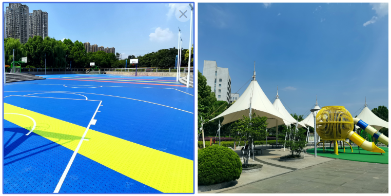 新海公園由于建園時間較早,使用率較高,在常年的風(fēng)吹雨淋之下飽經(jīng)滄桑,很多基礎(chǔ)設(shè)施老化,為更好的提高居民游園體驗,去年開始計劃籌備設(shè)施翻新,今年5月底完全投入使用。其中主要對籃球場鋪裝面進(jìn)行翻新改造,并引進(jìn)了多種新型運動娛樂設(shè)施。